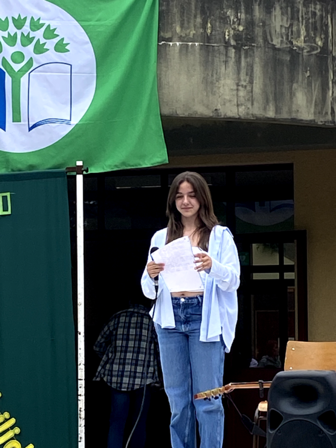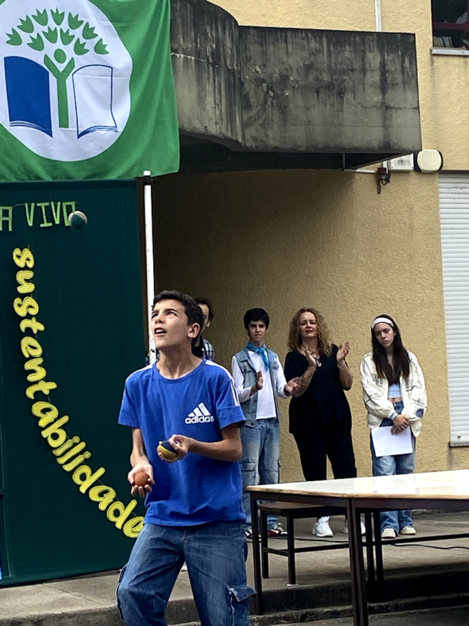 Na EB do Castro tudo começou ao som vibrante dos bombos, que percorreram a escola, reunindo alunos, professores e assistentes até ao pátio exterior. Ali, sob um céu cúmplice e com entusiasmo contagiante, teve início um momento de celebração coletiva. Juntos, assistimos a recitações poéticas, danças, canções e outras expressões artísticas que nos fizeram refletir sobre o planeta Terra — a casa comum que habitamos, mas que tantas vezes descuidamos.