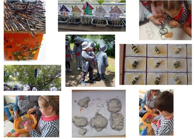 Construíram, ainda, caixas-ninho para passarinhos com materiais reciclados, promovendo a proteção da vida dos seres vivos e dos seus habitats. Além disso, transformaram papel usado em papel reciclado, exploraram a importância da redução de resíduos e da reutilização de materiais. Por fim, exploraram o ciclo da abelha, compreendendo o papel vital destes insetos na polinização e na saúde dos ecossistemas.
