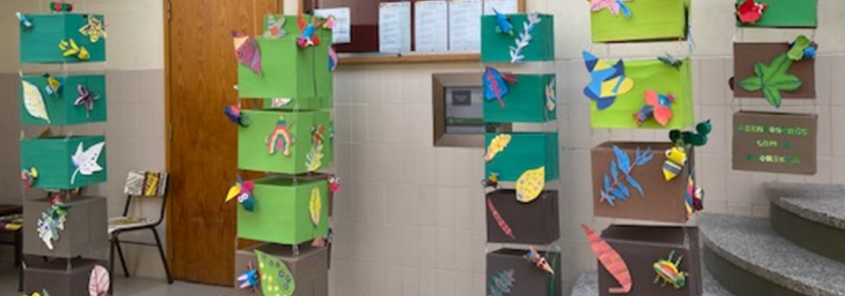 As formas, as cores, as texturas… tudo nos conduz a uma viagem por mundos imaginários, cuidadosamente reinventados pelos alunos do segundo ciclo. Uma floresta que não existe, mas que se sente viva — habitada por insetos nunca vistos e folhas que nascem da imaginação. Na produção destes trabalhos procurou-se d
