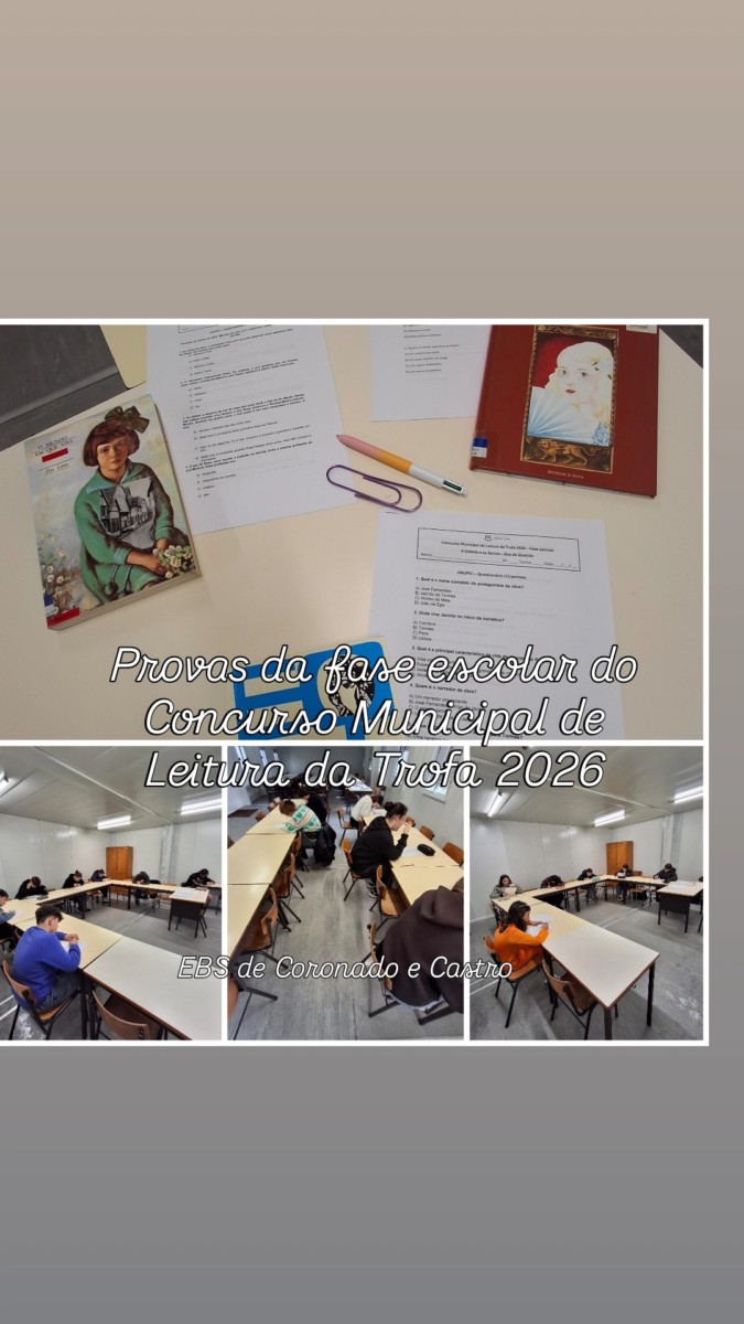 Prova escrita da fase escolar do Concurso Municipal de Leitura da Trofa 2026 na EBS de Coronado e Castro.