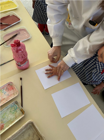 Como forma de expressão artística e simbólica, os alunos criaram um mural coletivo, pintando as suas mãos com cores representativas dos vários tons de pele. Este trabalho resultou numa composição rica e colorida, que evidencia a diversidade presente na comunidade escolar.