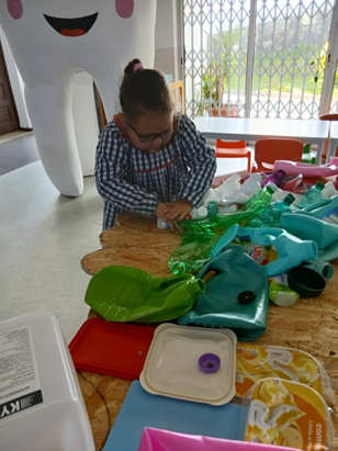 Com as sugestões do professor e a apresentação realizada teremos, com certeza, cidadãos mais responsáveis e respeitadores do meio onde vivem. Procedemos à recolha de materiais plásticos que foram descartados no contexto doméstico e escolar, juntamente com alguns materiais plásticos recolhidos nas praias do norte de Portugal. Com estes materiais estamos, neste momento, a construir um painel de grandes dimensões em forma de um mocho para, assim lembrar que cada um de nós pode fazer a diferença na salvação do planeta.